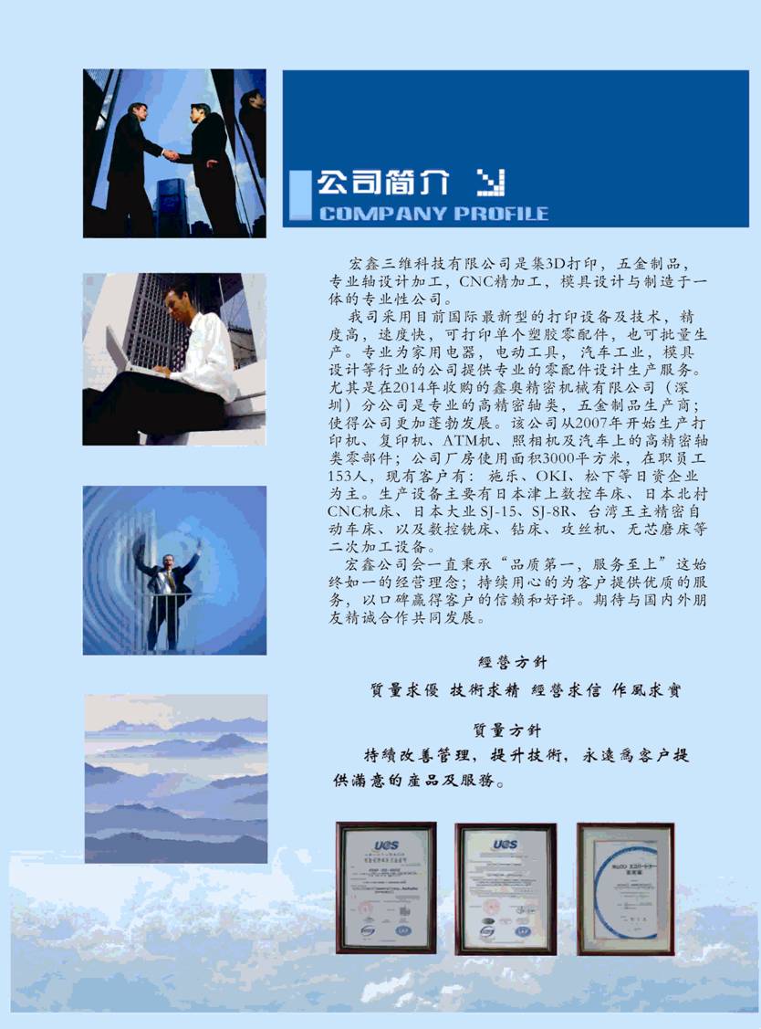 Hong Xin 3D Technology Co., Ltd. is a set of 3D printing, metal products, professional design and processing, CNC precision machining, mold design and manufacturing in one of the professional company.